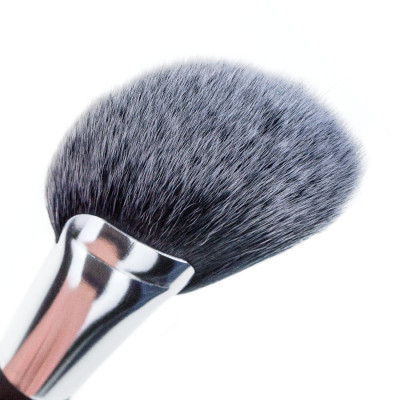 Пензлик для пудри, рум’ян і бронзатора, має надм’який натуральний кролячий ворс, який найкраще проявляє себе в тандемі з сухими текстурами, чудово віддає пігмент і делікатно обходиться з ніжною шкірою, не дряпаючи її поверхню.японського бренду Hakuhodo